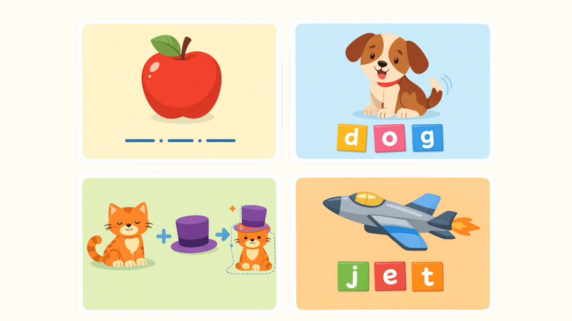 No prior knowledge needed. Children start with sounds, words, and simple phrases - even if English is completely new.